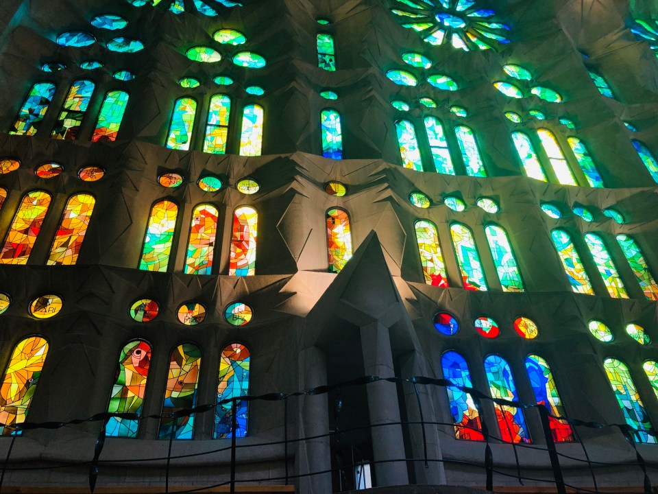 サグラダ・ファミリア内部のステンドグラス。もう一方は青と緑系