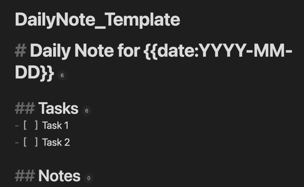 - デイリーノートにはテンプレとしてタスクリストがすでに記入されている