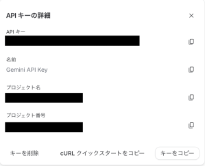 Google AI StudioにGoogleアカウントでログインして,「Create API Key」をクリックするだけです。無料枠が1日1,500リクエストまであるらしく,論文共有に使う分には全く問題ないと思います。