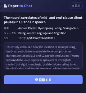 論文ページで拡張のアイコンをクリックすると,こんな感じのポップアップが出ます。
