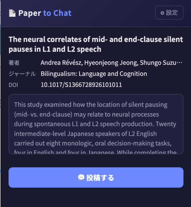 Chrome拡張を更新(リロード)した後は論文ページもF5で再読み込みしないとcontent scriptが再注入されないので注意です。これも地味に引っかかりました。