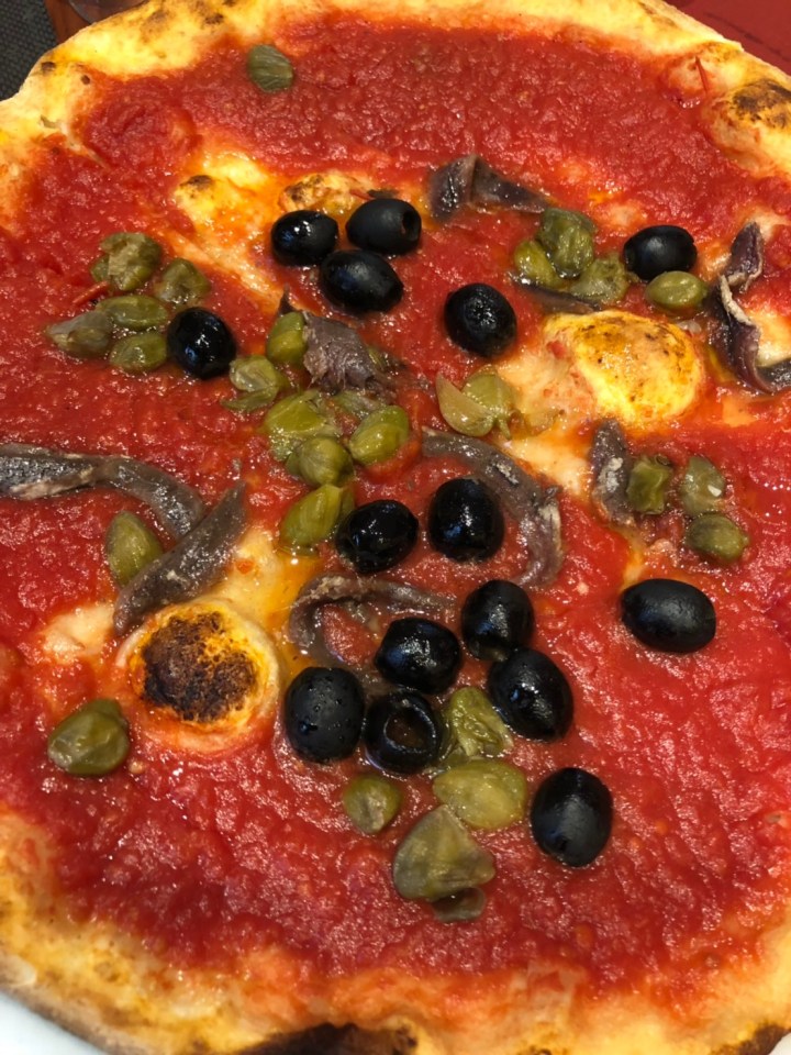 o548a35fbb093da1ffe230e0b3d157dad_31043797_190908_0251 ← 前へ 次へ → Le Pompeiというイタリアン。この日は疲れ切ってて夕食に出かける元気があまりなかったのでホテル近くのイタリアンで済ませました。これはセットの中のピザ。アンチョビ,オリーブ,トマトソースのシンプルなもの。
