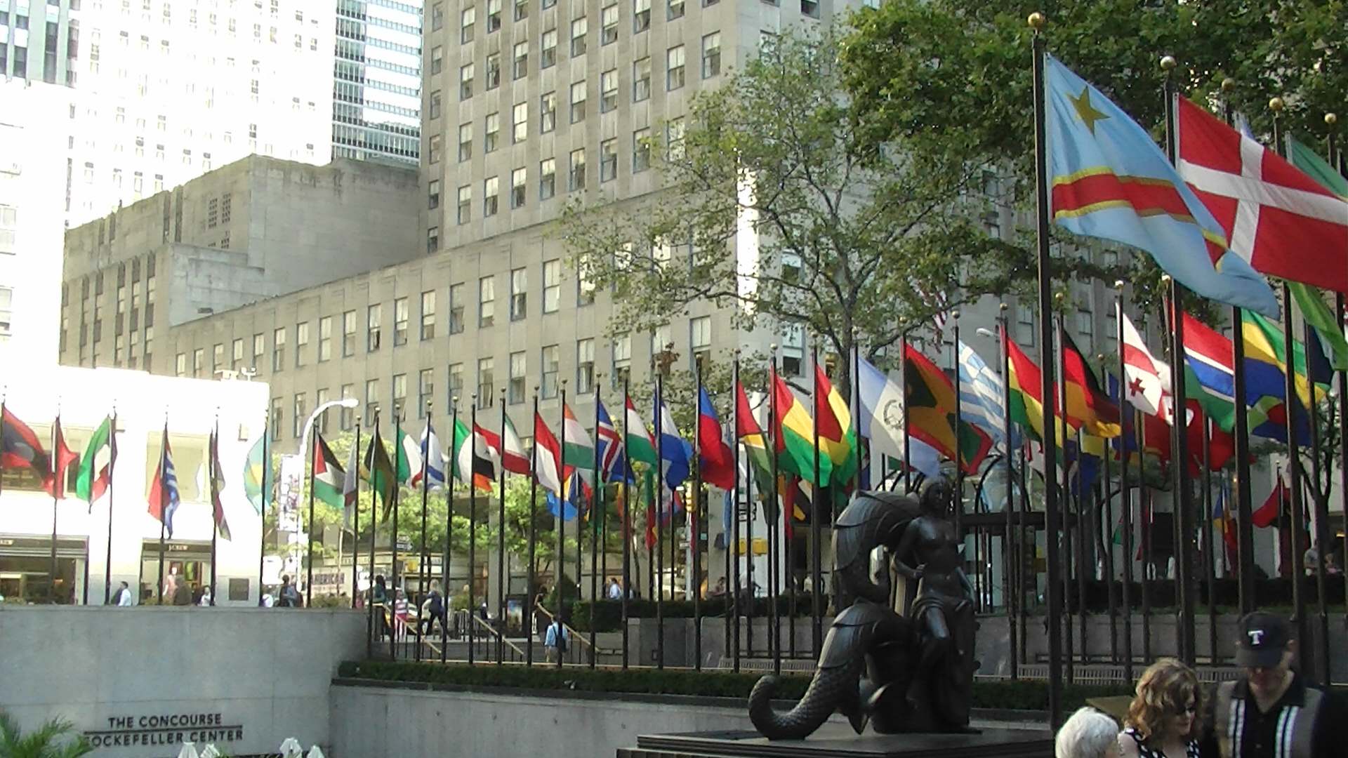 下にカフェがあるんですがそれを囲むように国旗が並んでます。