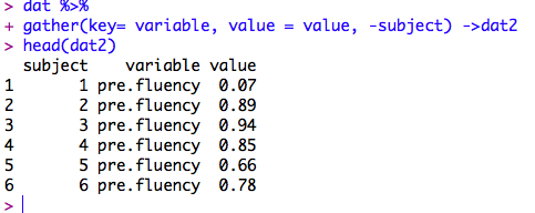 でもさーこうやってlong型にしちゃうとさー例えば事前のときの流暢さの指標の平均値とか出せないじゃん?wide型になってたら全部横にならんでるから列ごとに平均求めればいいだけじゃん?