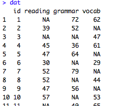 dat<-cbind(pre.fluency,pre.accuracy,pre.complexity,post.fluency,post.accuracy,post.complexity,delayed.fluency,delayed.accuracy,delayed.complexity)