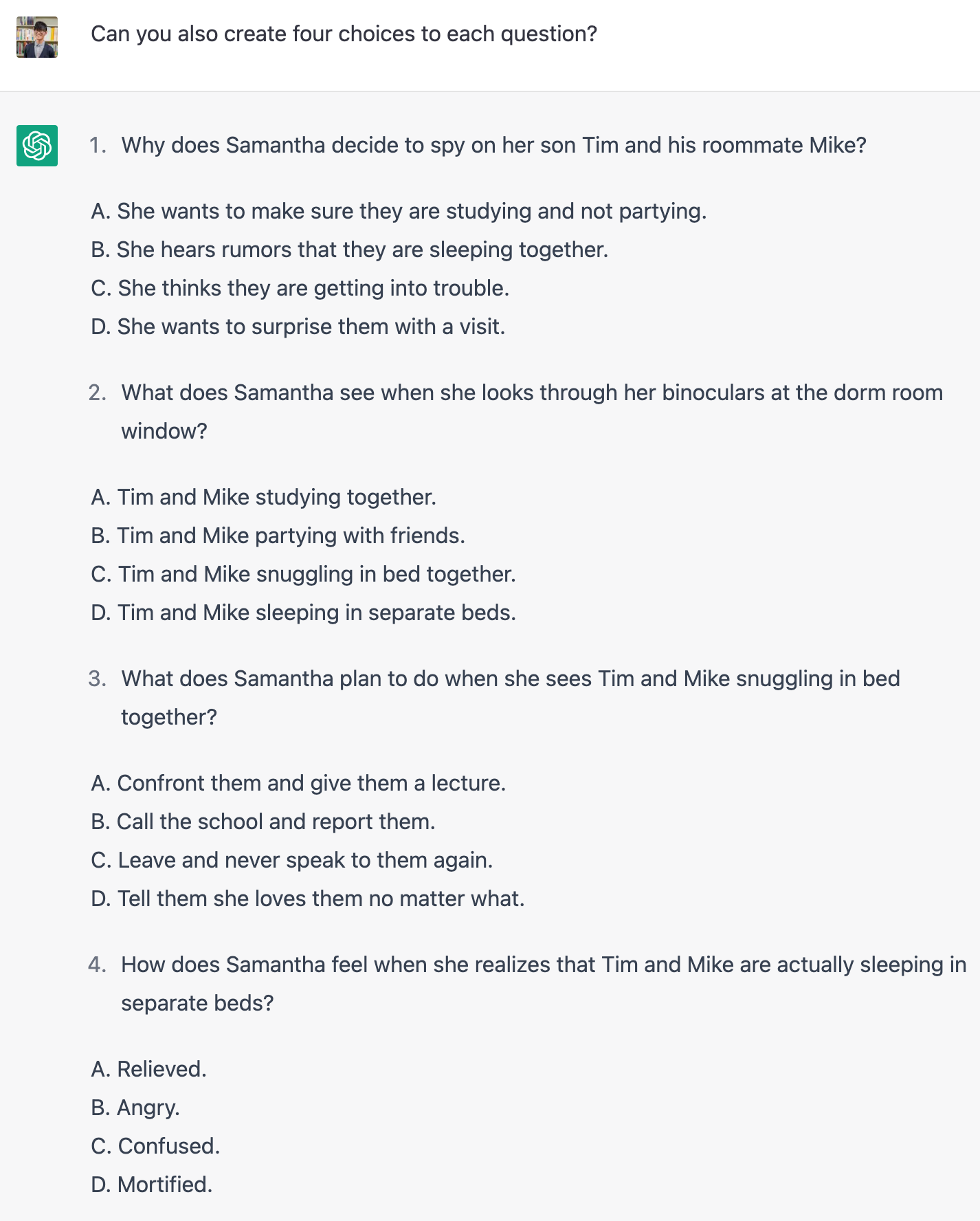 問題を作ってもらったはいいものの,選択肢がなかったので,4つの選択肢も作ってもらいました。