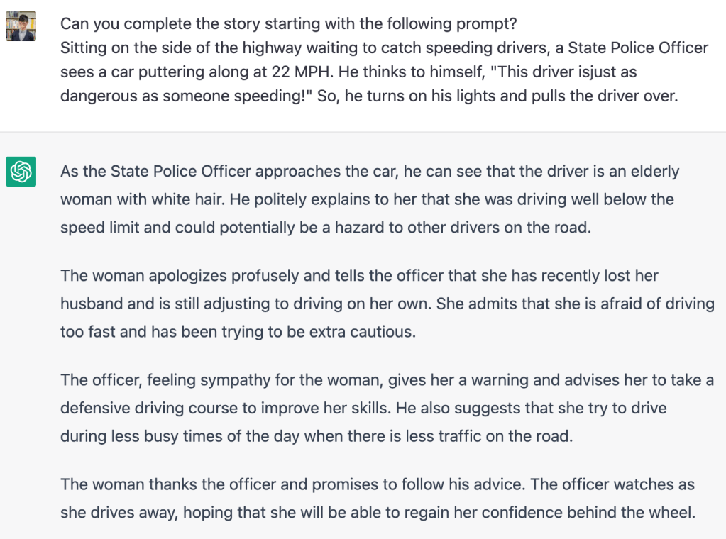 プロンプトを入力して,その続きとなる物語を書かせるとどうなるかやってみました。使用したのは,『Getting Things Done: Book1』のUnit13にある”Safe Driving”の冒頭です。
