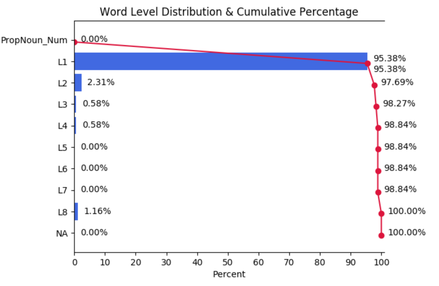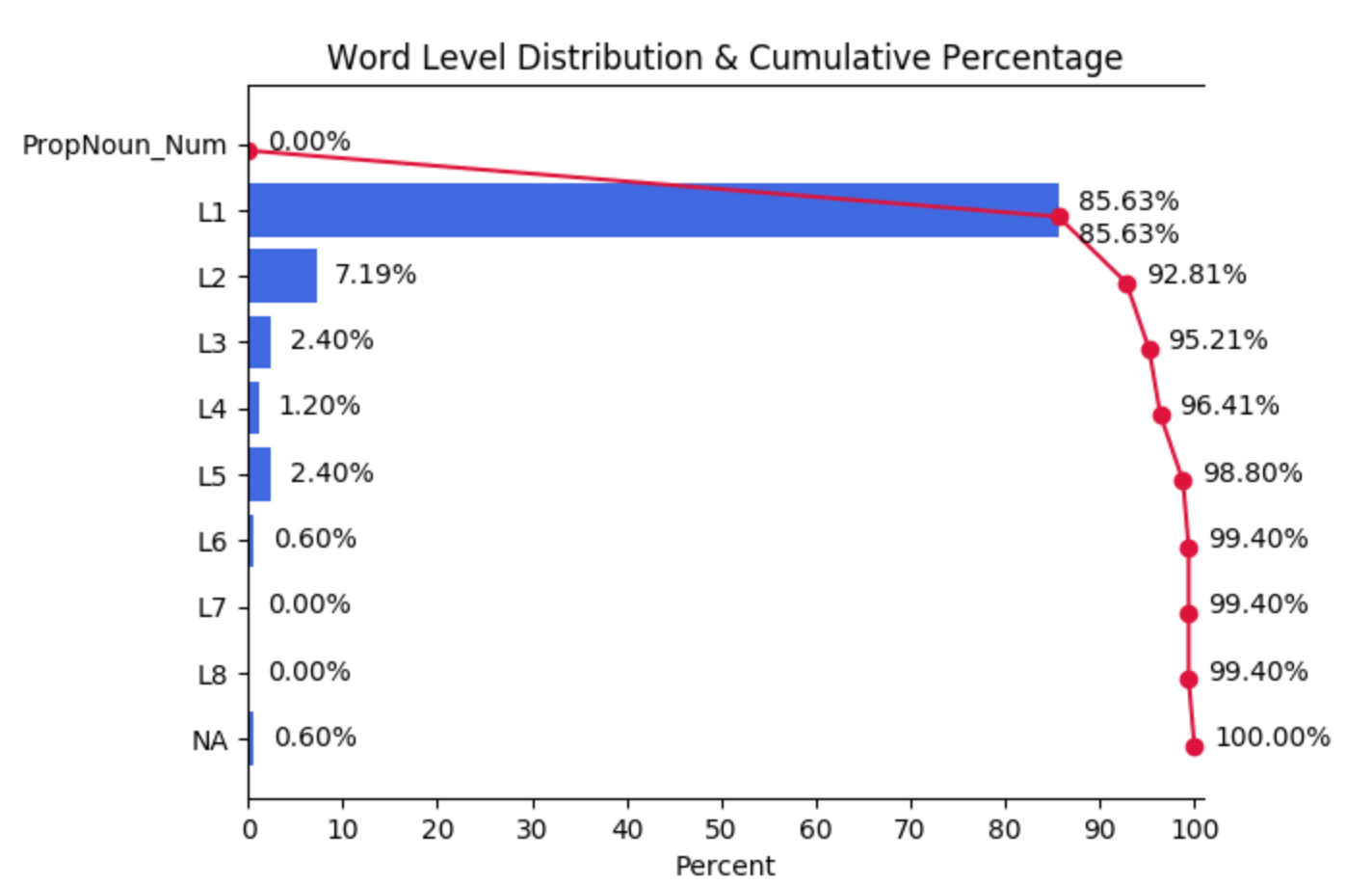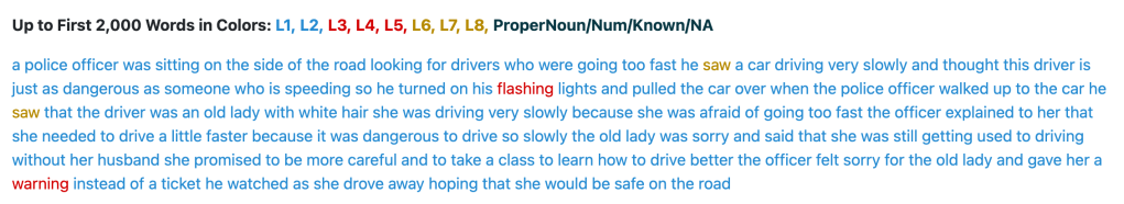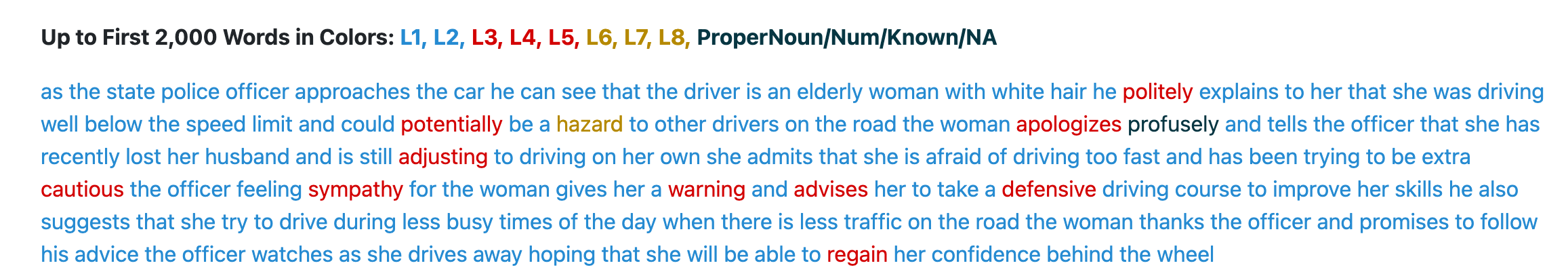 これでもほとんどはL1, L2で,L4までで96%くらいなので,そこまで難しい語彙が使われているわけではありません。では,書き換え後を見てみましょう。
