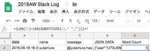 もうなんだかわけがわからなくなってきましたが,この最後の数式を使えば,新しく列を増やしたりすることなしに語数カウントができるようになっています。